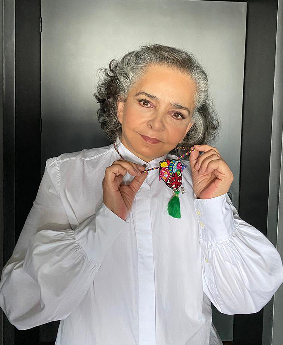Conjunto de la colección Milagritos para la actriz Arcelia Ramírez en la alfombra roja del GIFF 2024