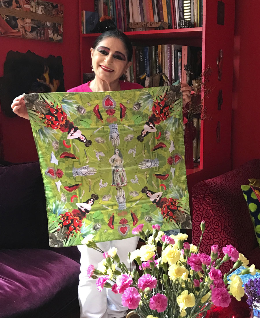 Mascadas, joyería, caminos de mesa realizados especialmente para la actriz Silvia Pinal