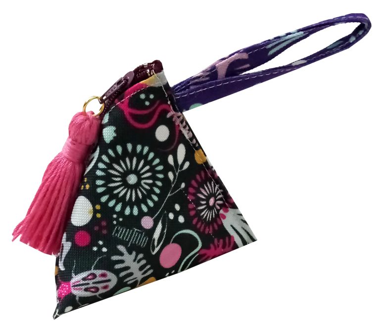 Monedero Triangular ideal para guardar monedas, cambios, billetes doblados, llaves, recibos, etc. Medida: 10 x 10 cms Material: Loneta impresa en sublimación Incluye pompón y correa para la mano. El diseño brinda comodidad y garantiza la seguridad de sus cosas. Perfecto para el uso diario, puedes llevarlo a la escuela, ir de compras, trabajar, etc.